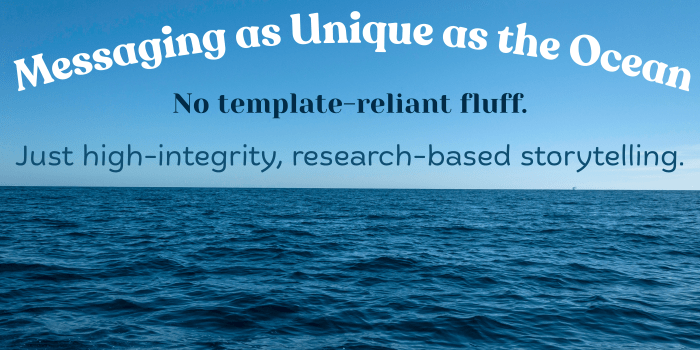 This is why I refuse to offer “fill-in-the-blank templates” or one-size-fits-all packages. While templates provide standard frameworks, often resulting in generic outcomes, your messaging should reflect the uniqueness of your business’s structure and story.